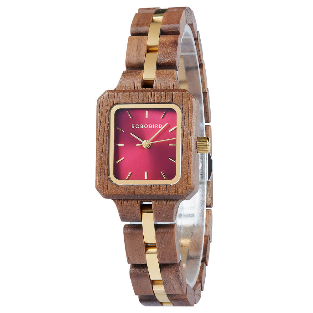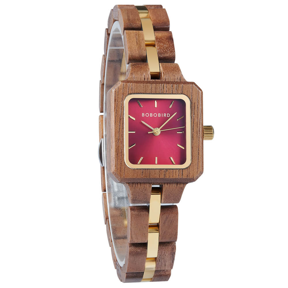 Ženska ročna ura je izredno lahka in prijetna za nošenje, saj je narejena iz visokokakovostnega lesa, ki je izjemno lahek, a hkrati trpežen material. Poleg tega pa je les tudi zelo trpežen material, kar pomeni, da bo vaša ura zdržala tudi najbolj zahtevne situacije. Lesena ročna ura je namreč narejena iz lesa, ki ima zelo nizko gostoto, kot so bambus, javor, sandalovina črne ebenovina….